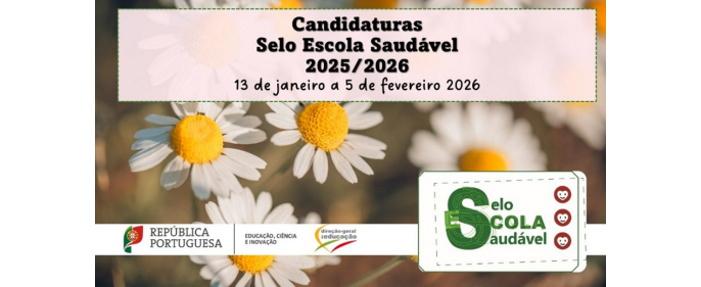 A candidatura à edição 2025–2026 do Selo de Escola Saudável poderá ser apresentada entre 13 de janeiro e 5 de fevereiro de 2026, na plataforma em https://area.dge.mec.pt/seloescolasaudavel/.