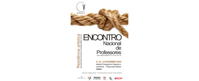 A Associação Nacional de Professores de Educação Visual e Tecnológica – APEVT, organiza o 38.º Encontro Nacional de Professores / Residência Artística, com a temática agregadora “Arte contemporânea – processos e tecnologias artísticas na escola”, nos dias 21, 22 e 23 de novembro de 2025, no Instituto Português do Desporto e Juventude - Parque das Nações, Lisboa.