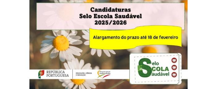 Face à instabilidade da plataforma onde decorre a candidatura ao Selo Escola Saudável (à qual somos alheios) e perante a intempérie que afetou a zona centro do país e outras localidades e cujos efeitos ainda persistem, o prazo de candidatura será alargado até às 23:59 do dia 18 de fevereiro.